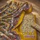 Ajrak printed design with intricately styled mirror neck pattern, adding richness and fine detailing.