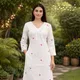 Crafted in premium Kotta Doria, featuring a subtle woven texture with delicate placement of small purple heart motifs that add a playful yet classy touch. The V-neckline with soft gathers enhances the silhouette, while the straight-cut design offers a flattering fall.