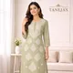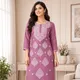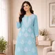Details: • Fabric: Premium Cotton / Cotton Blend • Work: Original Lucknavi Chikankari Embroidery • Style: Straight Kurta with Matching Pants (Co-ord Set) • Neckline: Embroidered Round Neck with Panel Detailing • Sleeves: 3/4th Sleeves with subtle lace finish • Bottom: Straight pants with coordinated embroidery