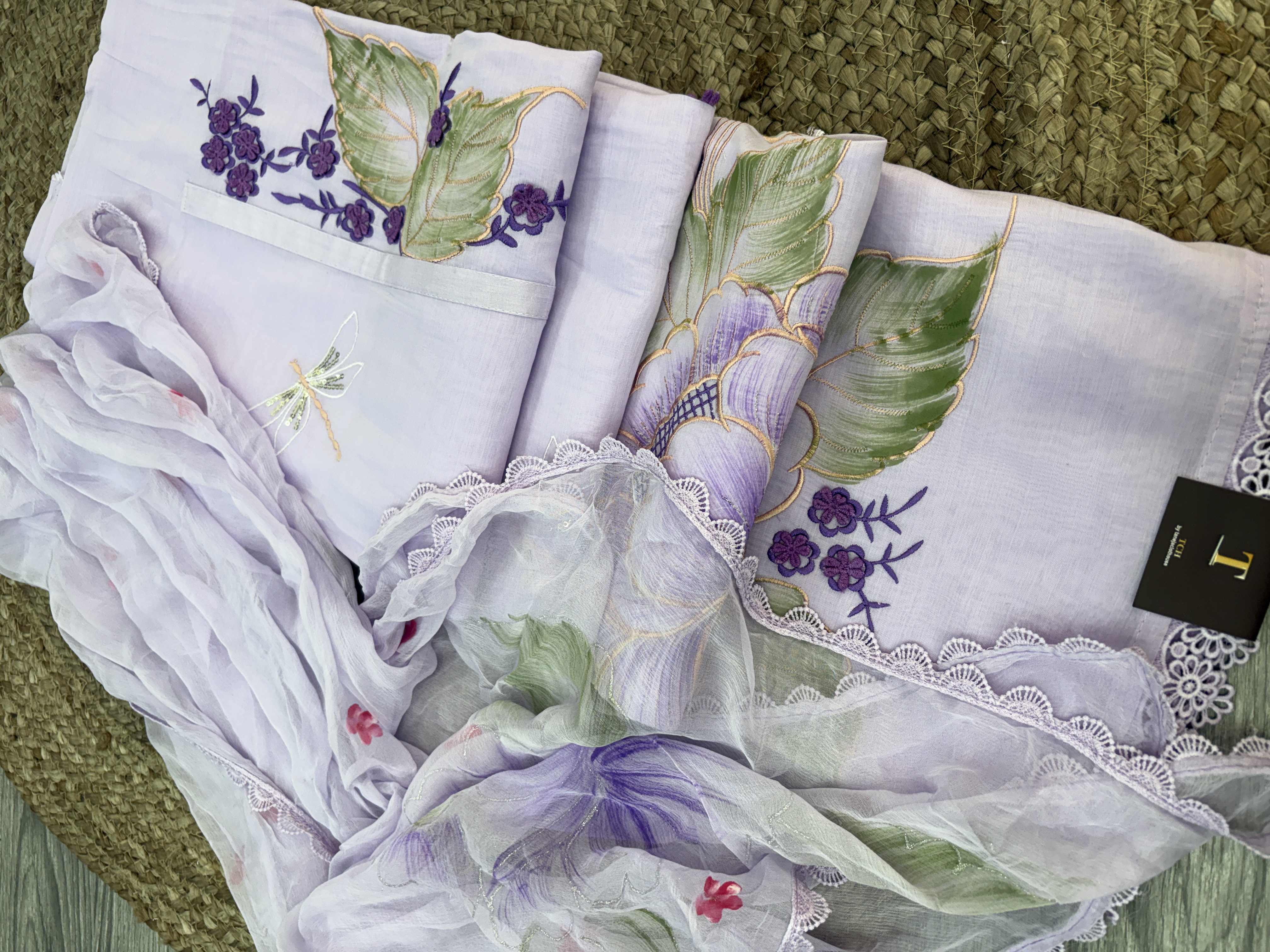 Paired with a lightweight Mul Chanderi dupatta, this set showcases soft floral prints, intricate lace edging, and a graceful flow that enhances the overall look.