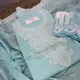 Soft and feminine mul cotton suit set featuring intricate white embroidery with a beautifully detailed neckline and elegant lace-finish dupatta. A perfect blend of grace and comfort.